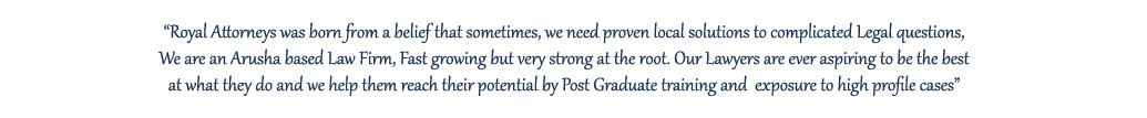 | ROYAL ATTORNEYS is a professional firm offering consistent high quality legal services and legal solution to its national and international clientele.